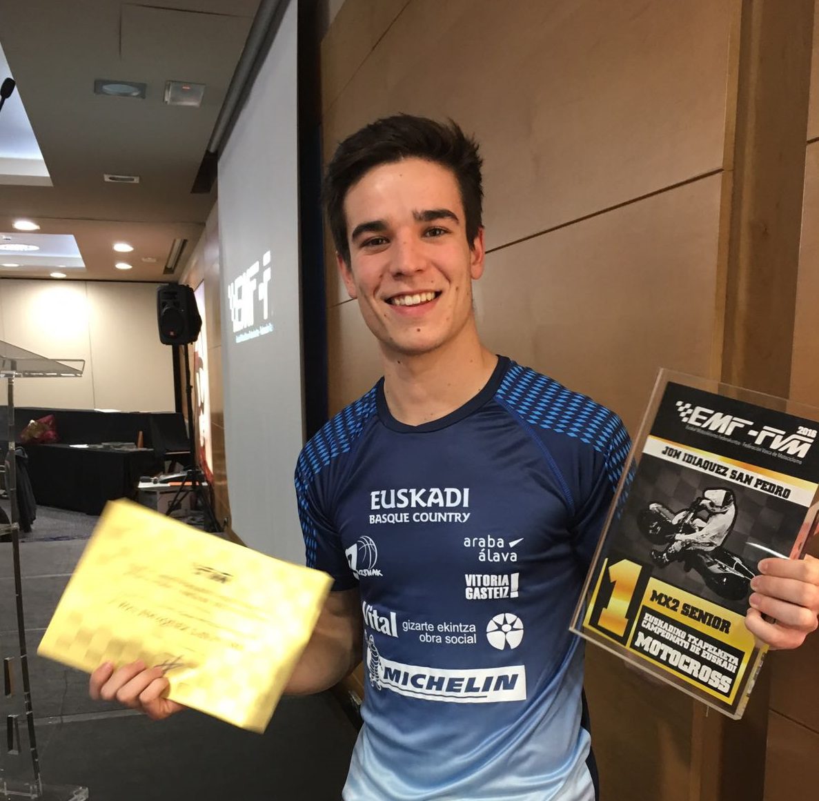 Jon Idiakez se mostró intratable en las cuatro pruebas puntuables para el Campeonato de Euskadi de motocross MX2. El piloto de Zuzenak, que concluyó en una buena decimotercera plaza en la general del campeonato de España, pero tuvo mejores sensaciones en el circuito autonómico, venciendo en la prueba de Ereño (Vizcaya), Karrantza (Vizcaya), Falces (Navarra) y la última disputada en la localidad burgalesa de Espinosa de los Monteros, dentro de la I Prueba Solidaria contra el cáncer infantil, puntuable para el campeonato vasco.