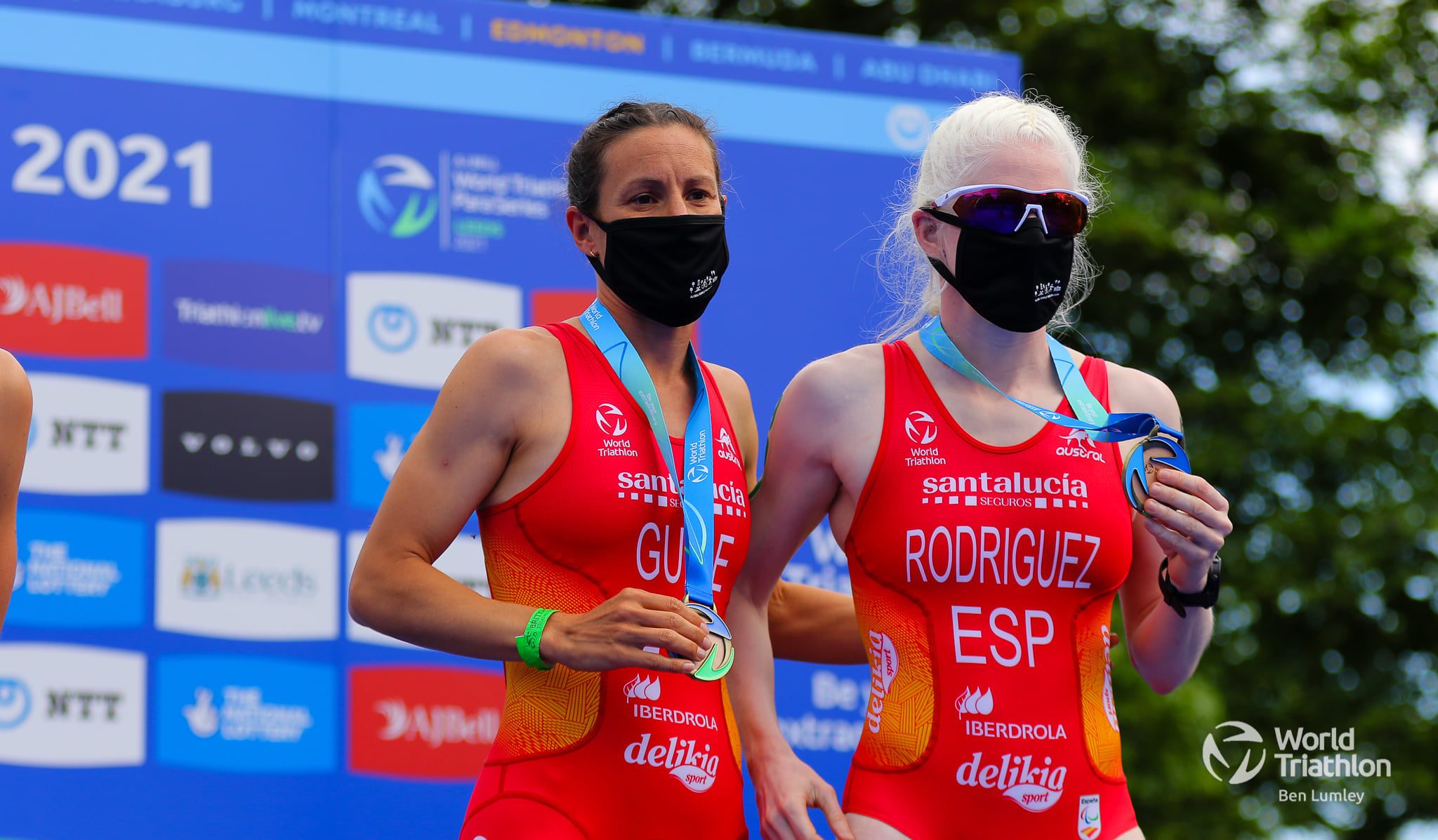 El triatlón español vuelve a exhibir músculo en una prueba internacional tras cosechar cuatro medallas en las Series Mundiales de Leeds, una de las últimas citas que servirán de preparación para los Juegos Paralímpicos de Tokio. La ‘ParaTriArmada’ continúa demostrando el gran nivel que atesora y en territorio británico sacó una buena tajada con el oro de Susana Rodríguez y su guía Sara Loehr, las platas de Eva Moral y de Héctor Catalá junto a Gustavo Rodríguez, así como el bronce de Jairo Ruiz. Semana redonda la que ha completado Susana Rodríguez, una deportista versátil y ‘todoterreno’ que espera hacer historia en Tokio compitiendo en dos deportes distintos. El martes, guiada por Celso Comesaña, se colgó la presea de plata en los 1.500 metros T11 en el Europeo de atletismo en Bydgoszcz (Polonia). Pese al derroche físico desplegado sobre el tartán, cuatro días después se presentaba con la catalana Loehr en Leeds para conquistar el oro en PTVI (ciegos o con deficiencia visual). La gallega, triple campeona mundial y número uno del ranking, manda un nuevo aviso a sus rivales de cara a los Juegos, donde peleará por subir a lo más alto. Las españolas salieron del agua en cuarta posición, pero recuperaron en el tándem y fueron las más rápidas en los cinco kilómetros a pie para lograr la victoria con un tiempo de 1:10.02. La plata fue para la italiana Anna Barbaro (1:12.31) y el bronce para la británica Alison Peasgood.