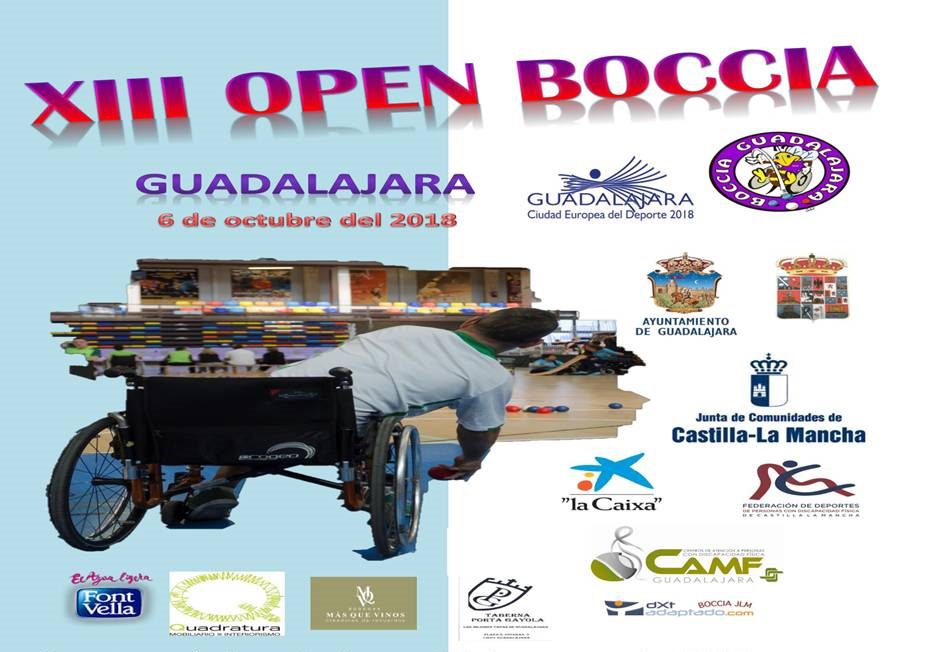Un año más, el Open de Guadalajara se celebra gracias al esfuerzo y la iniciativa del Club  Boccia Guadalajara. Además en la competición colaboran el Ayuntamiento y la Diputación de Guadalajara, la Junta de Comunidades de Castilla La Mancha y la Federación de Deportes de Discapacitados Físicos de Castilla-La Mancha. Por último, el Open cuenta con el apoyo de La Caixa, CAMF Guadalajara, dxtadaptado.com/, Quadratura Mobiliario e Interiorismo, Bodegas Mas que Vinos, Font Vella y Taberna Porta Gayola.