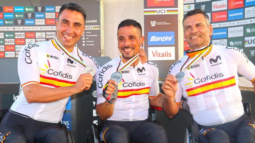 Una descalificación les dejó fuera del podio en el último Mundial en Emmen (Holanda) 2019. Dos años después, el Team Relay español ha podido sacarse esa espinita clavada tras conquistar la medalla de plata en la jornada inaugural del campeonato del mundo de ciclismo en carretera en Cascais (Portugal). El tridente de handbikers formado por Sergio Garrote, Israel Rider y Luis Miguel García-Marquina ha quedado en segunda posición, mejorando el resultado obtenido en su debut mundialista en Maniago (Italia) 2018, donde sacaron un bronce. El equipo dirigido por Félix García Casas, que venía de lograr una plata en la Copa del Mundo de Ostende (Bélgica), vuelve a ofrecer un gran rendimiento sobre el asfalto, quedándose muy cerca del maillot arco iris que finalmente se enfundó el combinado italiano con Luca Mazzone, Paolo Cecchetto y Diego Colombari. España salió al circuito de Estoril dispuesta a pelearle el oro a los favoritos y pronto se vio esa igualdad entre ambas selecciones.