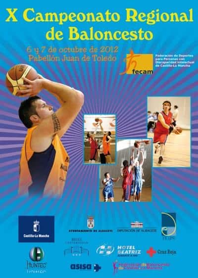 (Madrid, 4 de octubre de 2012). Este fin de semana el pabellón Juan de Toledo situado en la ciudad de Albacete acoge la X edición del  Campeonato Regional de Baloncesto. Esta competición la organiza Federación de Deportes para Personas con discapacidad Intelectual de Castilla- La Mancha (FECAM). En este torneo se contará con la colaboración de varias instituciones y empresas: Junta de Castilla- La Mancha, Ayuntamiento y Diputación de Albacete, FEAPS, Hotel Universidad, Hotel Beatriz, Cruz Roja, Huntec, Asisa y la Federación de Baloncesto de Castilla-La Mancha.