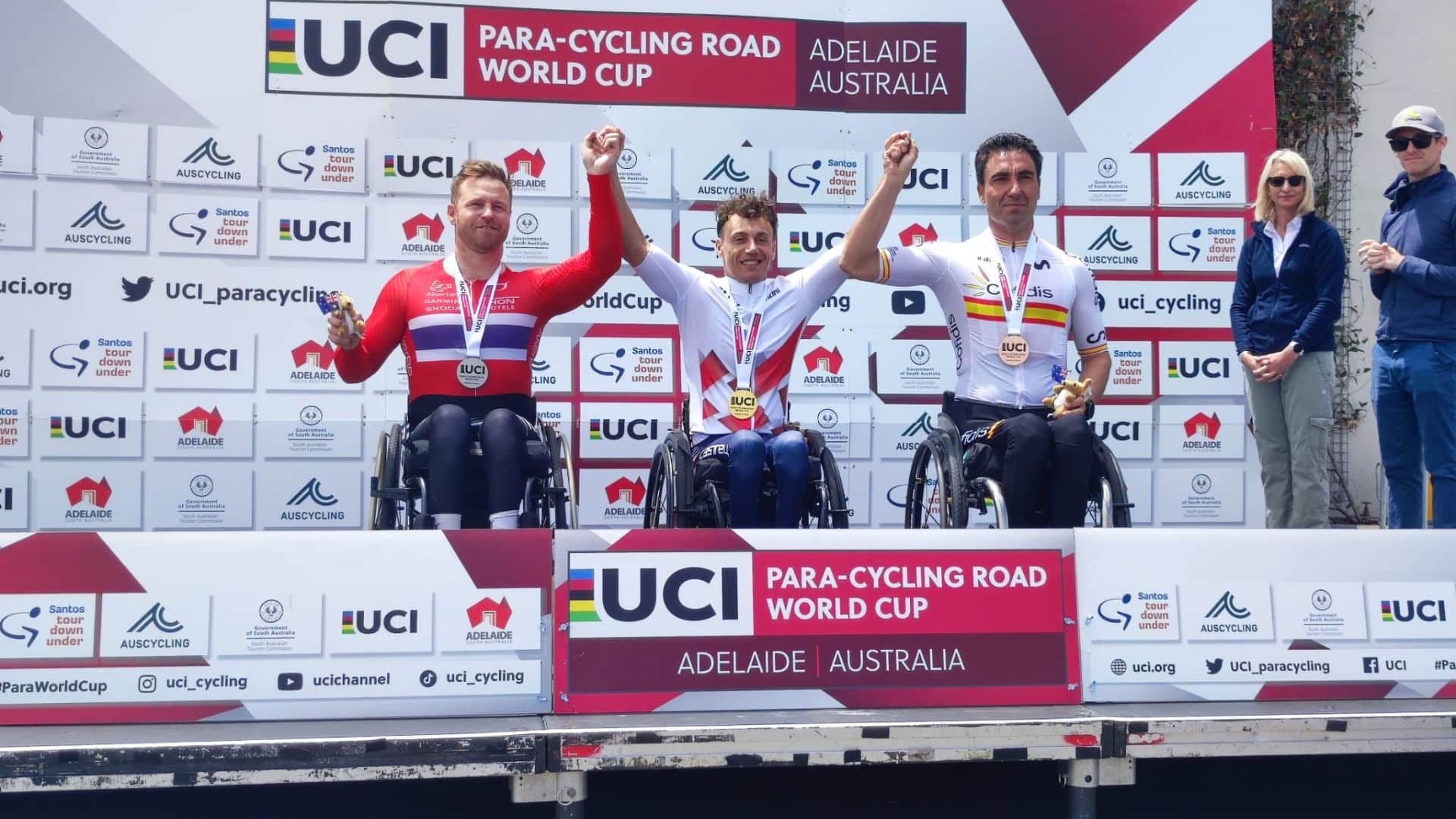 En la clase H4 Martín Berchesi ha terminado en la octava plaza, mientras que el madrileño Gonzalo García Abella en triciclo T1 ha tenido que conformarse con la quinta posición. España se marcha de territorio oceánico con nueve preseas: oro y plata de Ricardo Ten, oro y bronce de Damián Ramos, plata y bronce de Luis Javier Arcega, plata del tándem Christian Venge-Eloy Teruel y bronces de Eduardo Santas y García-Marquina. La Copa del Mundo vivirá en suelo europeo -el emplazamiento aún está por determinar- sus otras dos competiciones del 2 al 5 de mayo y del 16 al 19 de mayo. Antes, en marzo, se celebrará el Mundial de ciclismo en pista en Río de Janeiro.