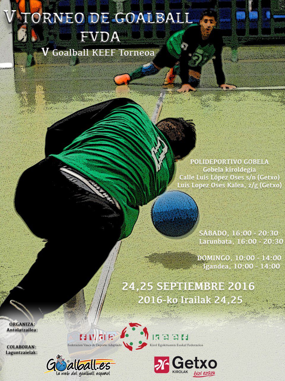 El polideportivo getxotarra de Gobela se convierte, una vez más, en escenario del Torneo de Goalball. La cita, organizada por la Federación Vasca de Deporte Adaptado, cumple este año su quinta edición.
