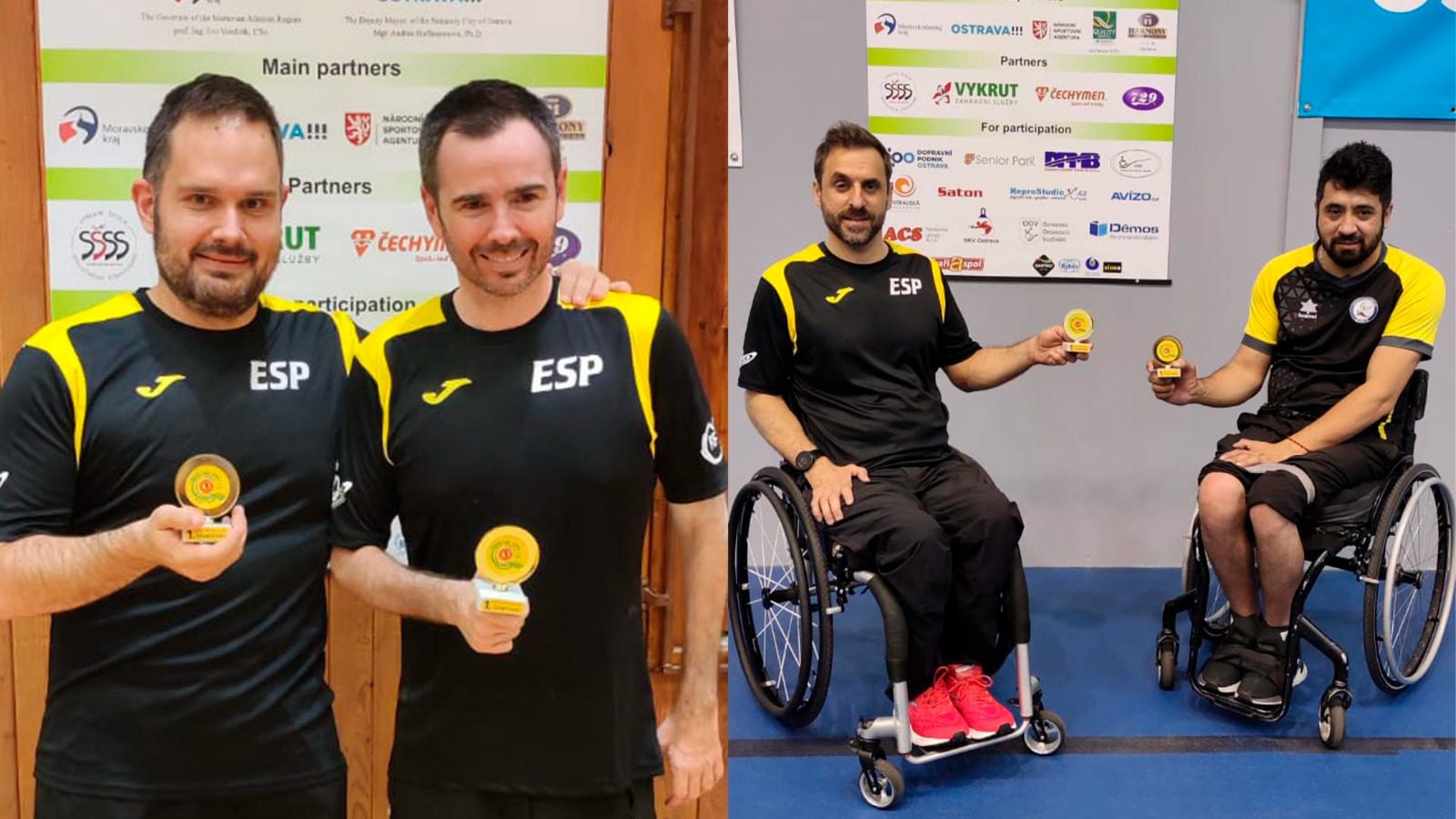 A las cuatro preseas logradas en individuales se han sumado este sábado dos metales más en la prueba por equipos. La dupla formada por Álvaro Valera y Jordi Morales ha conquistado el oro en clase 6-7, demostrando una vez más su solidez, talento y compenetración cuando juegan juntos. Los vigentes campeones de Europa y medallistas de plata en Londres 2012 fueron primeros de grupo tras vencer por 2-1 al checo Jaromir Nemec y al eslovaco Tomas Valach y 2-0 a los jugadores locales Petr Hnizdo y Kristian Jelinek.