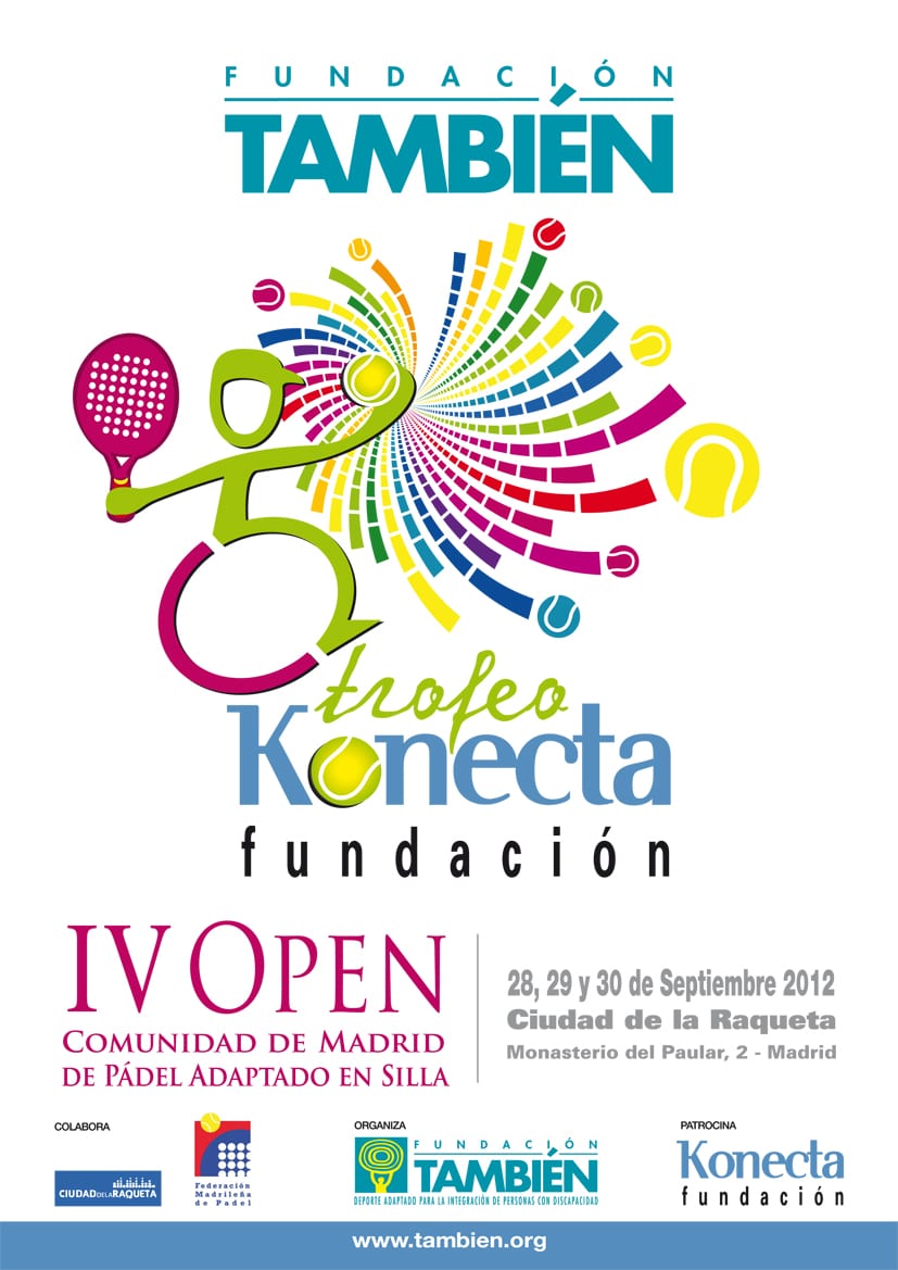 Fundación También.  Lo teníamos claro, después del gran éxito del pasado año, no podía faltar una nueva edición de la que se ha convertido en la gran fiesta anual del pádel adaptado. Este fin de semana, las mejores parejas del país estarán presentes en el “Trofeo Fundación Konecta IV Open Comunidad de Madrid Fundación También” para demostrar el alto nivel de un deporte que, además de haberse convertido en una alternativa de ocio adaptada para las personas con discapacidad, se ha hecho con un importante hueco en los circuitos nacionales.