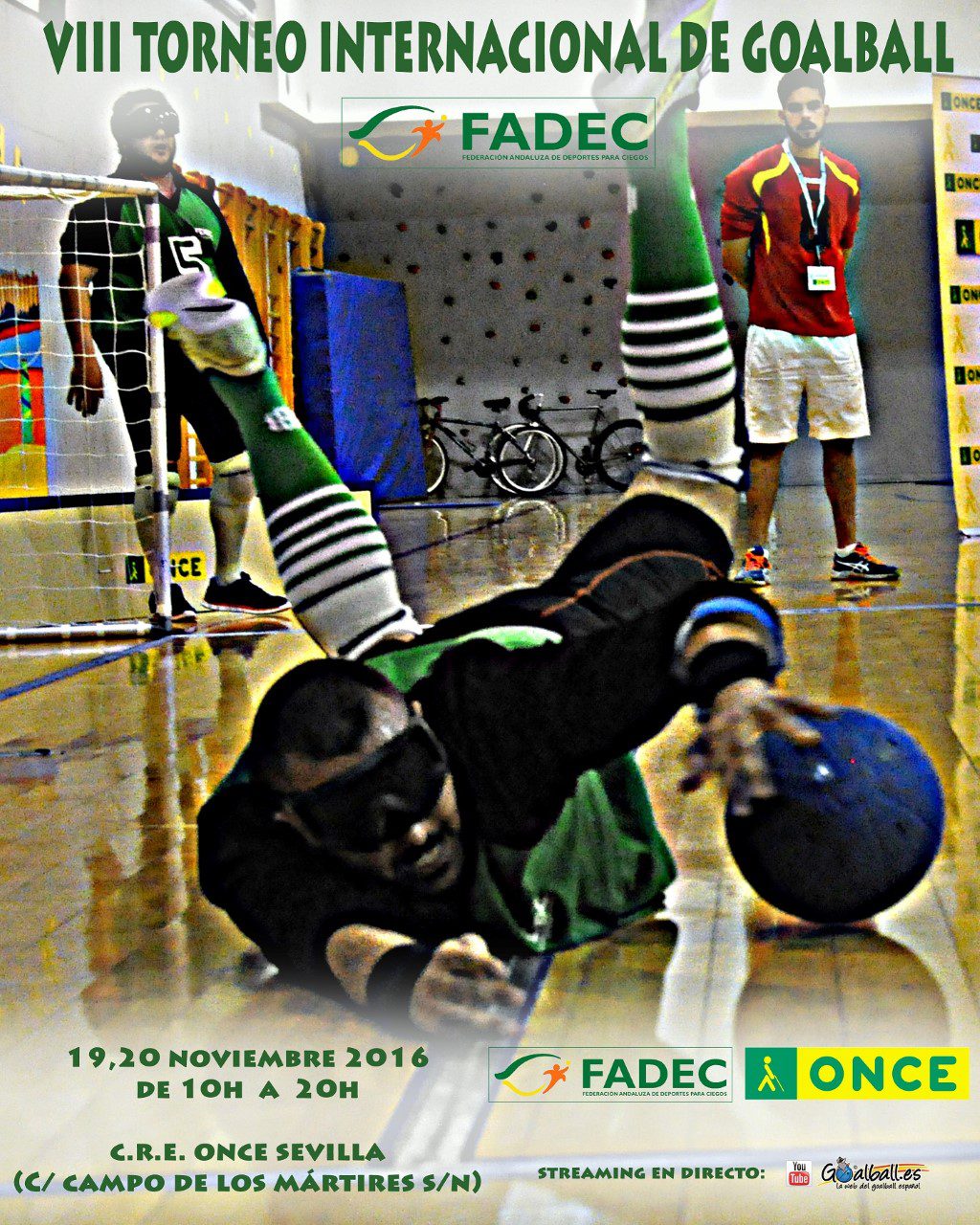 El VIII Campeonato Internacional de Goalball arrancará en las pistas del pabellón del CRE de Sevilla el sábado a las 10:30. Los partidos se prolongarán durante toda la jornada hasta las 20:30 h. El domingo la jornada comenzará a las 10.30 y finalizará a las 13.00 h. cuando está prevista la entrega de medallas.