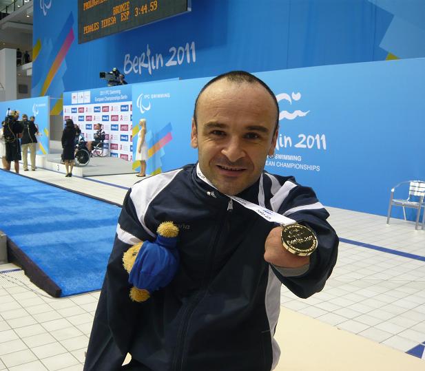 Miguel Ángel Pérez Tello con la medalla de bronce en los Juegos de Albertville 1992