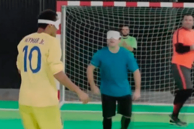 Neymar se vendó los ojos y mostró serias dificultades para jugar al fútbol sin ver absolutamente nada y guiándose sólo por el sonido del cascabel de la pelota.