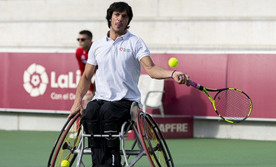 “El bajón anímico y el duelo lo pasé muy rápido, pero fueron momentos duros. El impacto de verte medio metro más abajo, sin poder andar, con mis padres y amigos ayudándome en todo fue jodido. Tienes que darte esa hostia para luego saborear la remontada. Cuando pasé la tormenta empecé a ver el sol de nuevo y fue el tenis el que me iluminó. Menos a rehabilitación, en Gutmann me apuntaba a todo, hice tenis de mesa, esgrima, tiro con arco, baloncesto y natación. Hasta que agarré una raqueta y ya no la volví a soltar”, relata. José Aguado, un impulsor del tenis en silla a nivel nacional, fue quien lo moldeó. “Le estoy agradecido por todo lo que hizo por mí. Poco a poco fui incrementando las horas de dedicación, mi nivel mejoraba y los resultados llegaban”, cuenta.