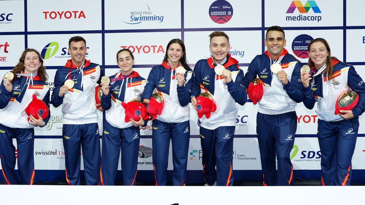 En el quinto día del Mundial de natación paralímpica en Singapur, el equipo español vivió su jornada más gloriosa. El Centro Acuático OCBC fue testigo de una cascada de medallas para España: seis en total, entre ellas un oro en el relevo 4×100 estilos mixto 34 puntos y una trabajada plata de Marian Polo en 50 libre S13.