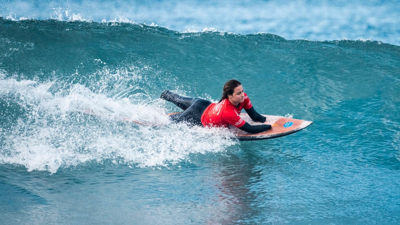 Sarah, amputada de manos y pies tras una meningitis meningocócica sufrida en 2018, ganó en la categoría Prone 2 -reservada a deportistas que surfean tumbados y necesitan asistencia para remar y subirse a la tabla- con una autoridad incontestable.